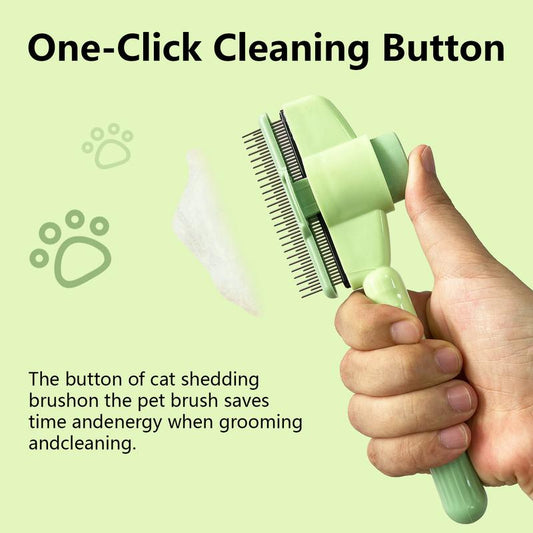 Cat Comb Dog Comb Pet Hair Removal Tool Short Stainless Steel Teeth Cat Flea Comb Dog Tick Comb Cat Brush with Release Button Self-Cleaning Convenient Hair Removal